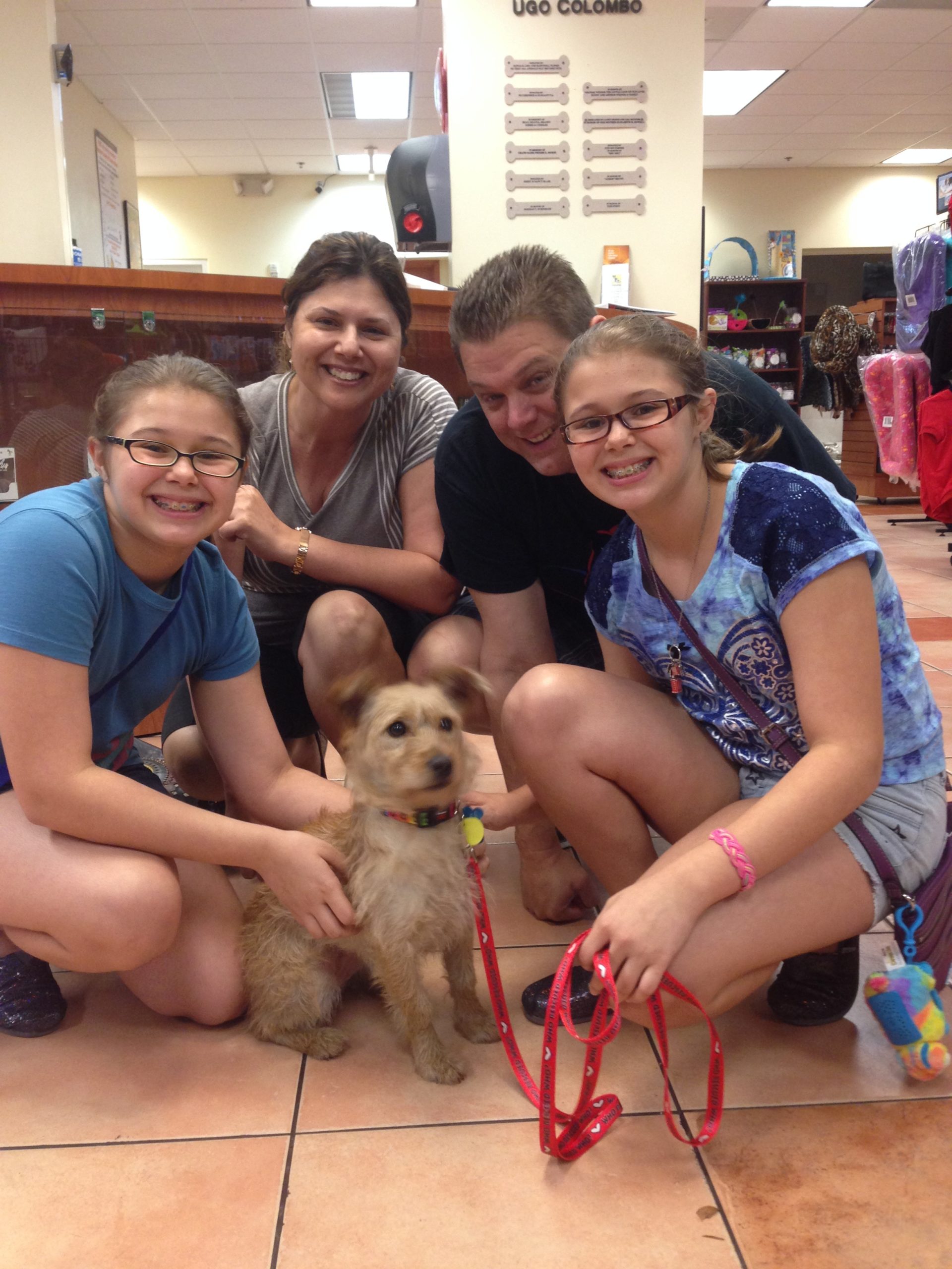As I’ve mentioned, my twin daughters like to gang up on me many times! I actually took only one for the first-time visit to the shelter. When we saw ‘Tasha’ we were instantly connected. I was looking for a smaller dog so we could easily travel with it over the summer, to the park, etc. The girls were just looking for the ‘lovey cutesy’ factor and we both won with “Tasha.” She’s very sweet and fits right in to our busy lifestyle. Always ready to go wherever and whenever, she’s quickly become our latest family member.